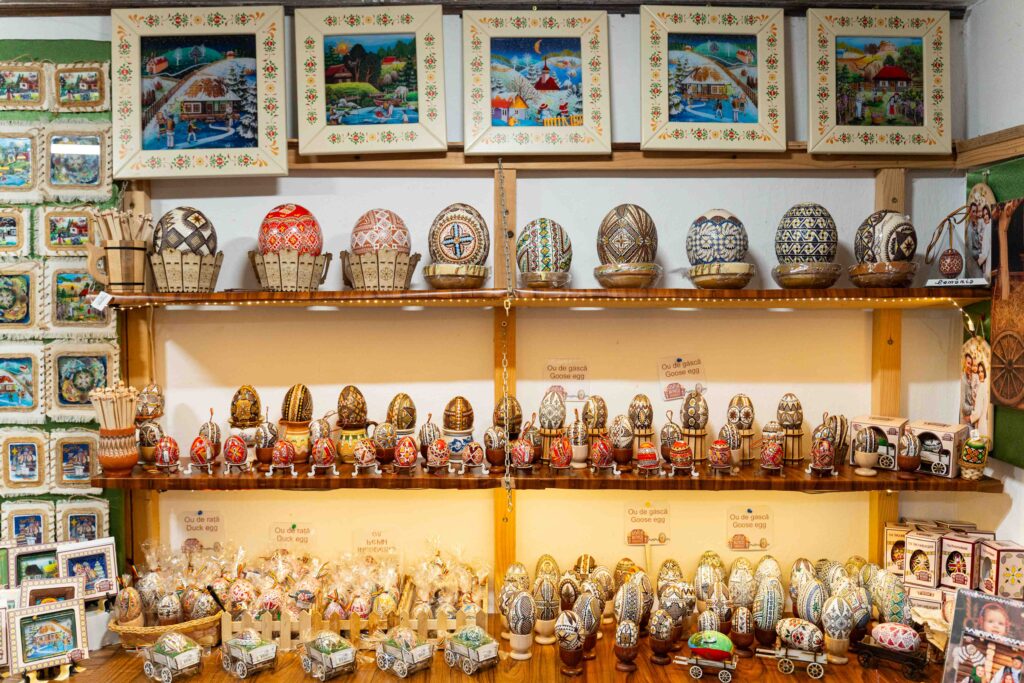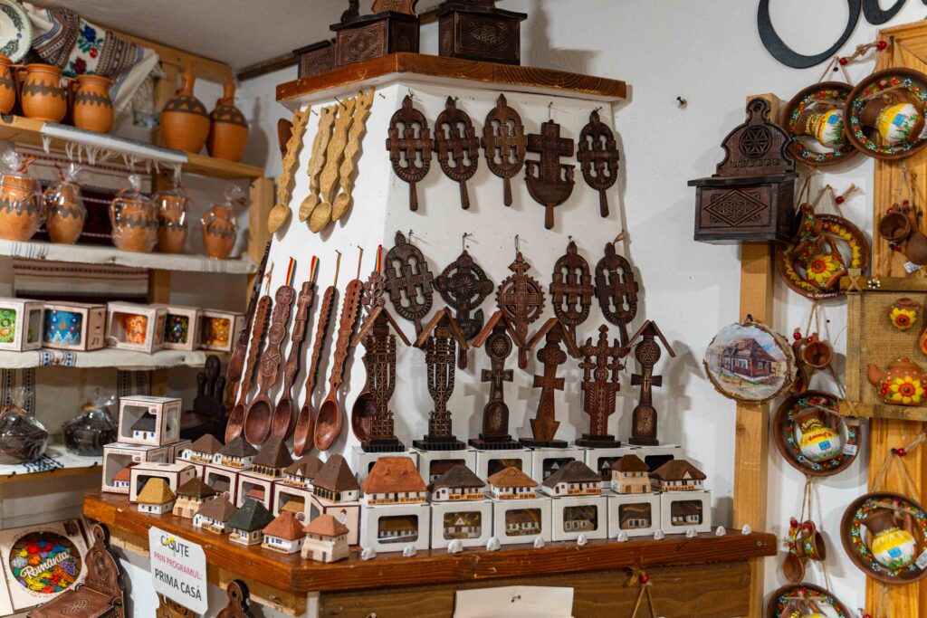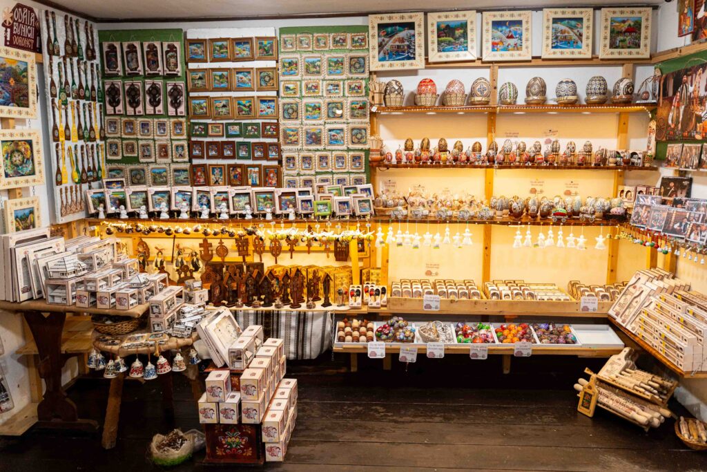În acest spațiu elegant și primitor, veți descoperi o varietate de produse, printre care magneți cu imaginea Mănăstirii Voroneț, linguri din lemn sculptate, căsuțe tradiționale bucovinene din lemn ce pot fi montate chiar de dvs. sau pot fi cumpărate gata asamplate, tablouri pictate pe sticlă – in stil naiv , icoane, curci din lemn, candele, ouă incondeiate, tocatore de nervi și schimbătoare de păreri, costume tradiționale, ștergare, covoare și multe altele.